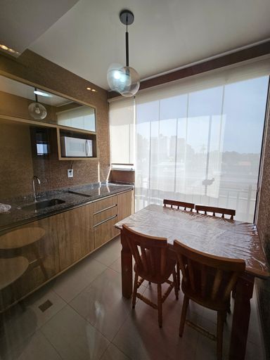Varanda estendida e envidraçada, integrada ao ambiente.