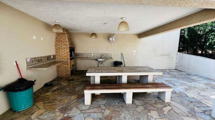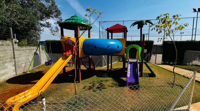 O condomínio conta com infraestrutura completa: piscina, churrasqueira, playground, quadra poliesportiva, salão de festas e segurança 24 horas, proporcionando lazer e tranquilidade para toda a família.