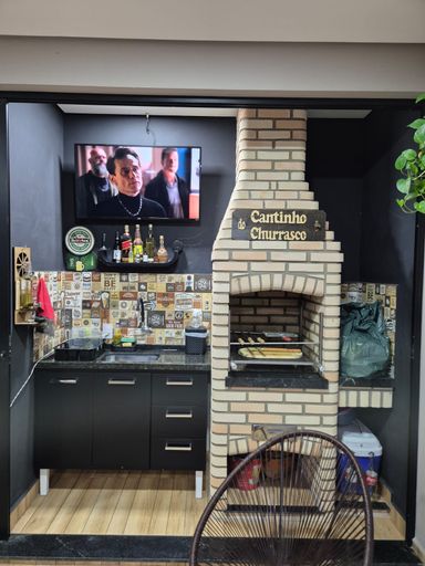 Área gourmet com churrasqueira e depósito embutido, ideal para momentos de lazer