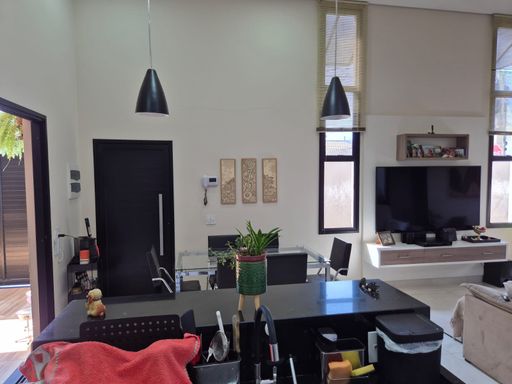 Sala com pé-direito de 4,5m, proporcionando amplitude e luminosidade