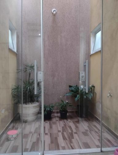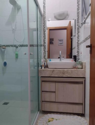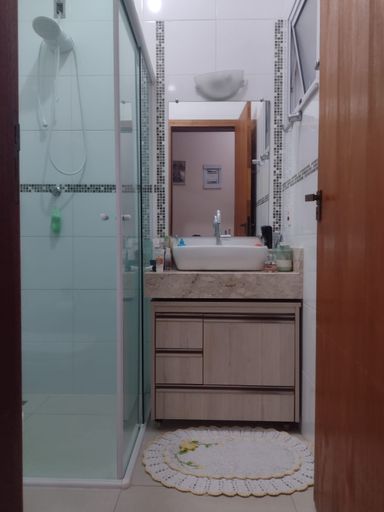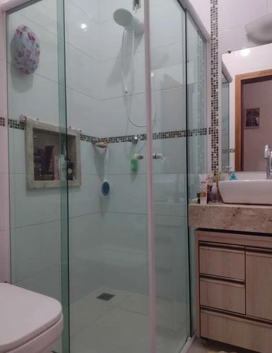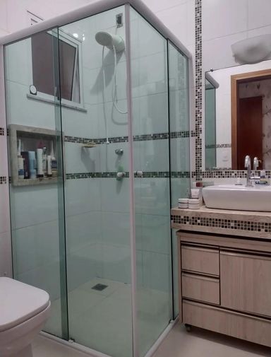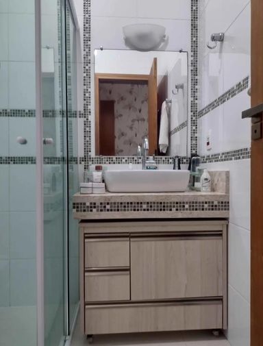 Banheiro social com gabinete e box blindex