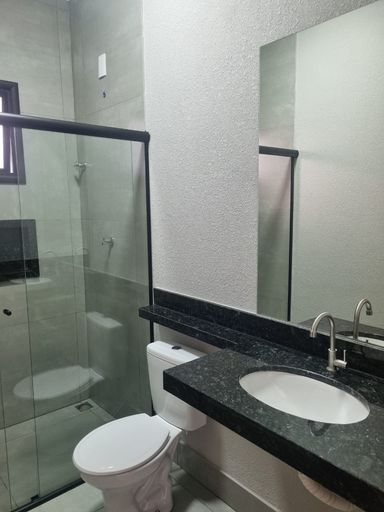 ✅ Banheiros com box de vidro e espelhos instalados