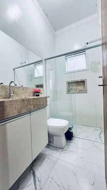 Com 178,57 m² de terreno e 133,65 m² de área construída, este sobrado conta com 3 quartos, sendo 1 suíte espaçosa. A entrada se destaca pela fachada contemporânea com tons neutros e portão automático, proporcionando praticidade no dia a dia.
