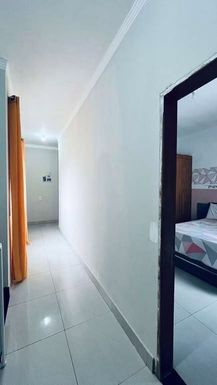 A área íntima possui três quartos, todos bem arejados e com muita luz natural. A suíte oferece bastante espaço, perfeita para momentos de descanso, além de contar com um banheiro privativo.