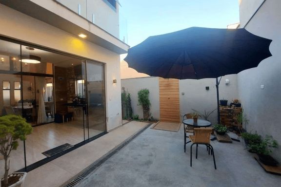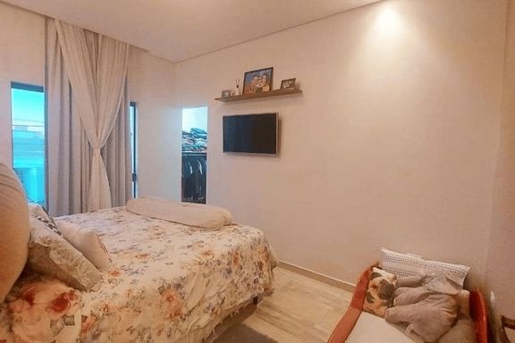 Esta residência de 154 m², em um terreno de 175 m², é uma combinação perfeita de modernidade e conforto. O mezanino com pé direito alto e a escada em mármore travertino romano são detalhes que conferem sofisticação ao imóvel. Os espaços gourmet e quintal amplos são ideais para momentos de lazer e convivência, complementados pela localização alta que oferece uma vista deslumbrante da cidade.