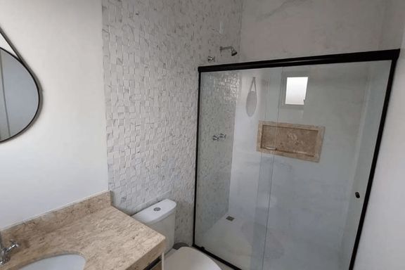 Este imóvel oferece 160 m² de área construída em um terreno de 300 m², proporcionando amplo espaço e conforto. São 3 suítes, sendo a suíte master com closet, e uma sala com pé direito duplo integrada a sala de jantar, criando uma sensação de amplitude e luminosidade. A cozinha e a lavanderia também estão integradas, facilitando a rotina da casa.