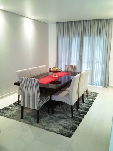 Salas de estar e jantar integradas, oferecendo amplitude e sofisticação
