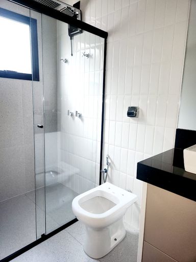 3 suítes, sendo 1 suíte master com closet, 2 cubas e 2 chuveiros