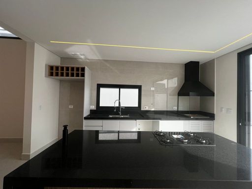 Cozinha com conceito aberto, equipada com armários planejados e ilha central para refeições e momentos em família