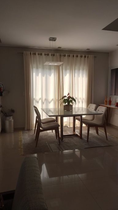 Sala de jantar: mesa com 6 cadeiras e buffet