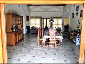 ✅ Sala de estar e sala de jantar com pé direito duplo e teto em madeira nobre
