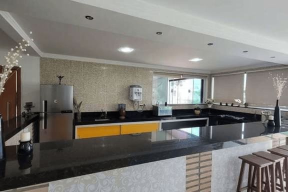 Nos fundos, um salão de festas completo, com piscina adicional, cozinha, uma suíte e mais um banheiro, amplia as possibilidades de uso e diversão. A garagem coberta tem espaço para 4 carros, agregando conveniência e segurança.