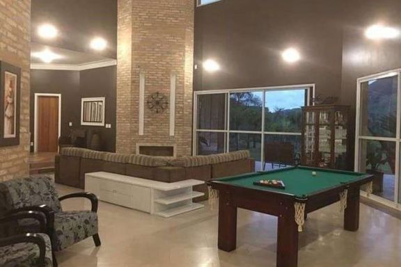Com uma área total de 28.000 m² e uma casa principal de 800 m² com arquitetura rústica e sofisticada, esta propriedade é um refúgio encantador. A casa dispõe de 5 suítes confortáveis, uma ampla sala de estar com lareira, sala de TV equipada com parabólica (opção de recarga Claro), e uma cozinha grande e completa, equipada com fogão, dois fornos, geladeira “Bay Side', micro-ondas e todos os utensílios necessários.