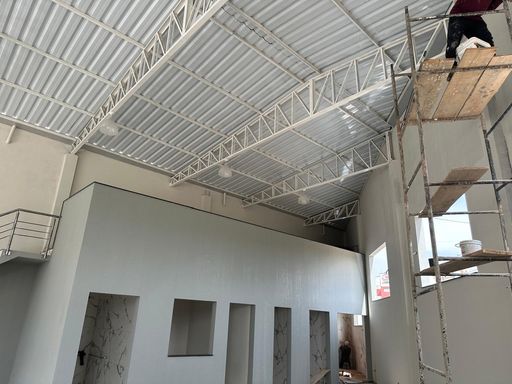 Piso industrial reforçado (15 cm de concreto usinado e impermeabilizado – suporta +6 toneladas)