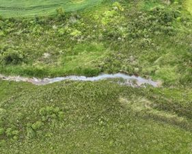 Hidrografia: Córrego com potencial para formação de represa + nascente